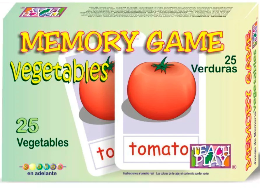 Juego de memoria de verduras en inglés. excelente material didáctico para que los niños aprendan ingles jugando. tarjetas impresas a color y plastificadas por ambos lados. Contenido: 50 tarjetas. Tamaño Aproximado: tarjeta 7x10 cm.