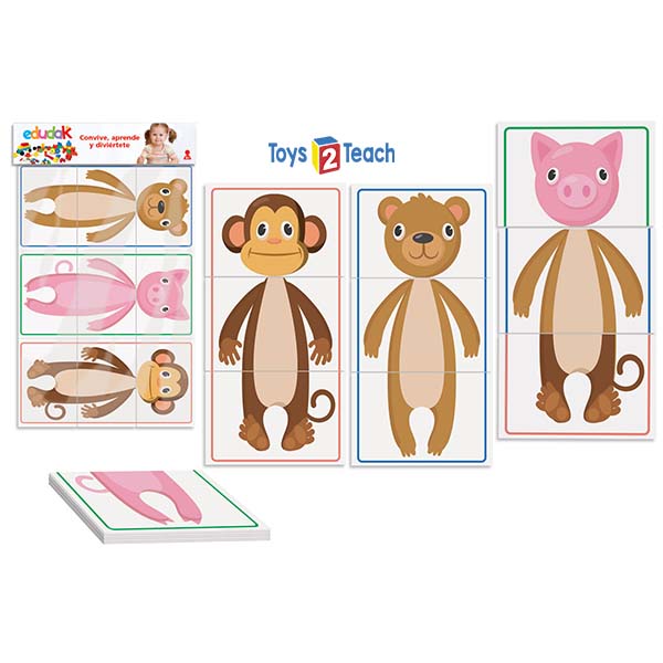 Son 3 divertidos Rompecabezas de 10 x 20 cm de 3 piezas cada uno. Divertido juego para niños pequeños con el que pueden desarrollar su imaginación creando graciosos personajes con las diferentes tarjetas.