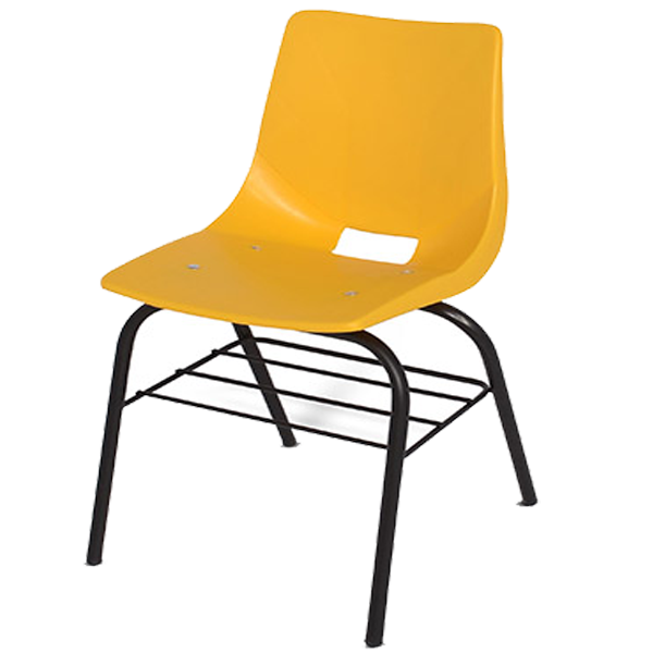 Estructura tubular redondo de 1” calibre 18, acabada en pintura micropulverizada y electrostática color negro. Regatón de polipropileno antiderrapante ensamble a presión pegado a la estructura con adhesivos. Asiento y respaldo integrados en una concha de polipropileno de alta densidad, parrilla portalibros fabricada en redondo macizo de ¼”. Diferentes colores. altura piso al asiento 45 cm. Ideal Primaria Alta +.