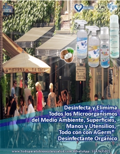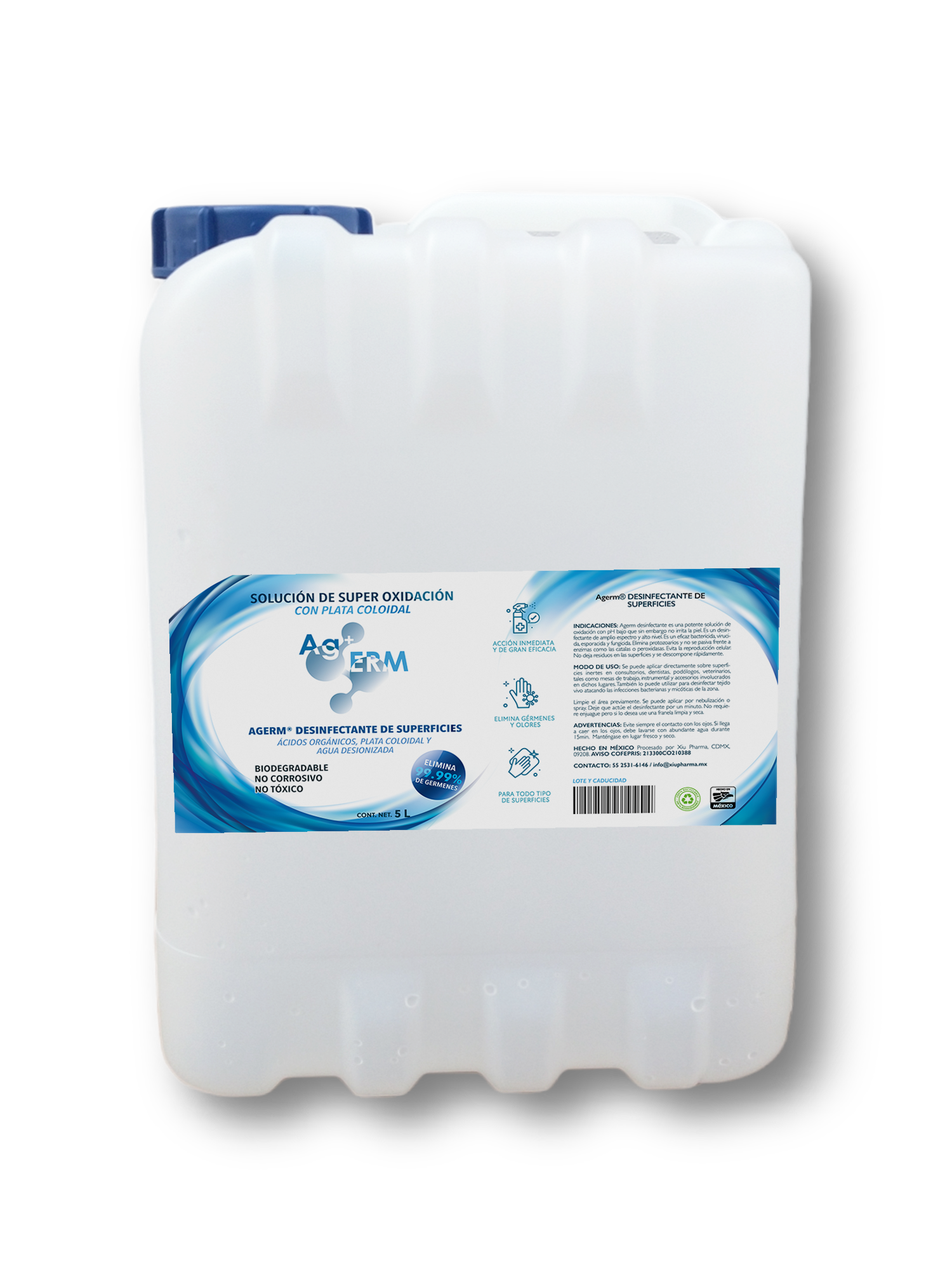 AgERM® es un excelente desinfectante de amplio espectro y alto nivel, recomendado para la desinfección de áreas y todo tipo de superficies, incluyendo como biogermicida en tejidos, es completamente orgánico y 100% ecológico. No es irritante ni tóxico a la piel.