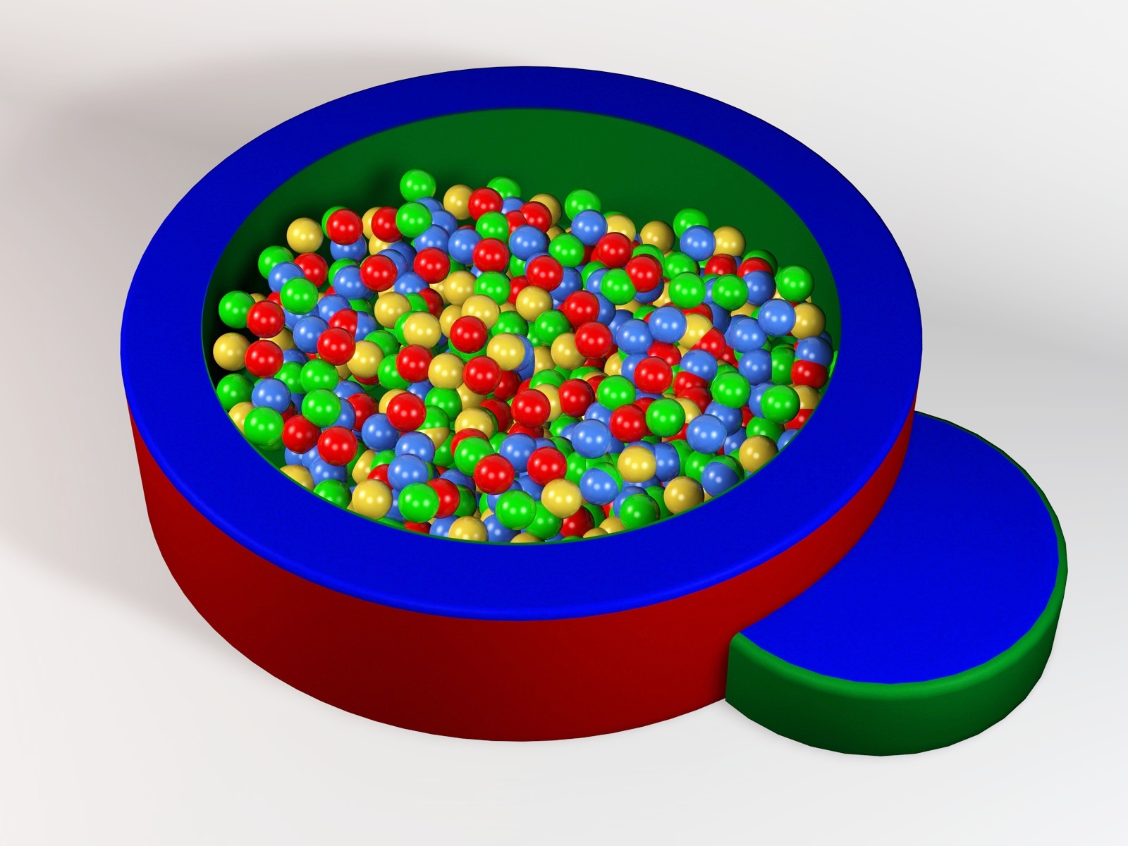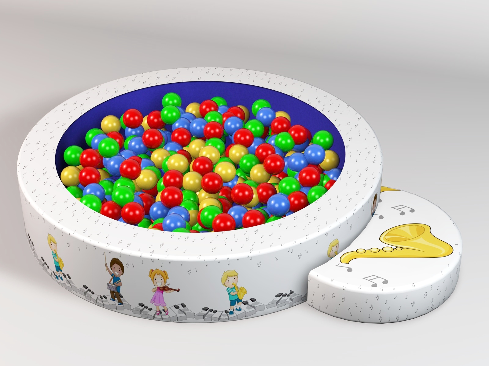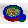 Medidas: 120 cms de diámetro x 25 cms de altura inclye:1 alberca,1 escalón, la alberca Incluye el fondo de tela (no Incluye pelotas) fabricado con espuma de poliuretano de alta densidad recubierto con vinil.