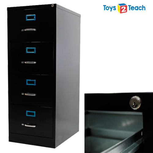 Estructura metálica con cuatro gavetas de almacenamiento tamaño oficio; gaveta superior con cerradura y juego de llaves, así como porta etiquetas y botón de apertura en cada una, convirtiéndola en el elemento ideal para sumar a cualquier tipo de espacio una dosis perfecta de comodidad y buen diseño.