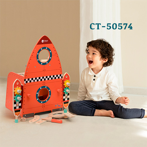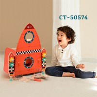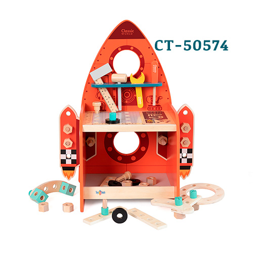 Medida 46.4 x 28.8 x 56.2 cm. Contenido; 51 Piezas. Utiliza el destornillador, la llave inglesa, el martillo, la regla, los tornillos, las tuercas, los engranajes, etc. para construir tu reino de cohetes. Gira los potentes engranajes a ambos lados de los propulsores, hacia el espacio exterior. El tablero presenta orificios y dimensiones precisos para ayudar a los niños a hacer manualidades, crear e inventar. Gran banco de herramientas para cultivar sus intereses y desarrollar la motricidad fina.
