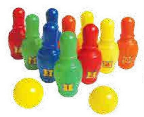 Útil para la coordinación ojo-mano, reconocimiento de colores y para iniciar a los pequeños en el mundo de los números, Presentación: bolsa con 10 pinos y 2 pelotas, Tamaño Aprox. pino 19 x 7 cm, pelota 8 cm de diámetro, nivel preescolar.
