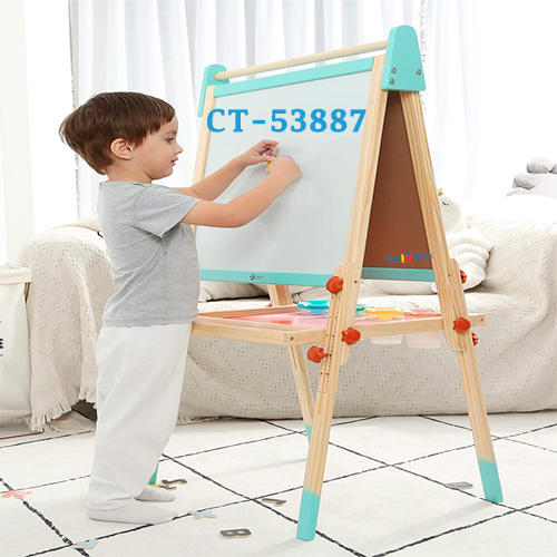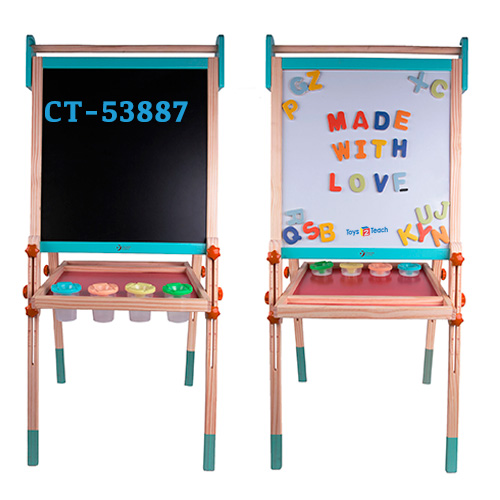 Medida 54 x 45 x 113 cm. El caballete plegable tiene una pizarra y una pizarra magnetica para que los niños creen bonitos dibujos. La escala en los marcos laterales permite ajustar facilmente la altura. Incluye godetes de plastico para pintura y alfabeto magnetico en ingles. Les ayuda a aprender ingles y desarrollar su creatividad.
