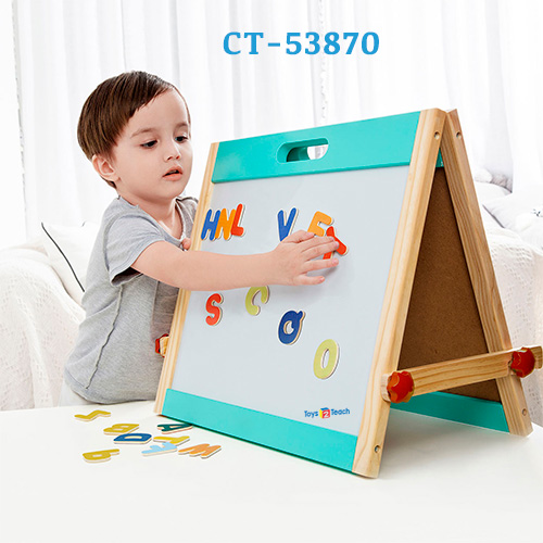 Medida 52 x 9 x 47 cm. Este caballete de mesa es facil de plegar. Incluye 26 letras magneticas del alfabeto para aprender ingles y, cuenta con un pizarron y una pizarra magnetica para que los niños creen bonitos dibujos. Ayuda a desarrollar su creatividad y capacidad lingüistica.