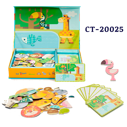 Medida 2 x 20.5 x 5.5 cm. Contenido: 60 Piezas. Caja magnetica de los animales del bosque, incluye hasta 14 animales los cuales podras construir uniendo las distintas piezas imantadas, podras tambien guiarte por las tarjetas o inventar distintos animales