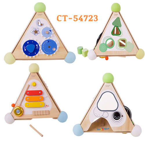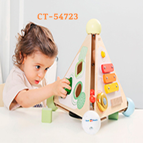 Medida 33 x 35 x 29 cm. Contenido: 6 Piezas. ¡Esta caja de actividades de juguete en forma piramidal fabricada en madera brindara al niño diversion infinita! Diseñada con una estructura de tetraedro de forma muy creativa, la caja se puede rodar como una pelota en cualquier direccion pero sin resbalar, por lo que el infante o puede rodarla facilmente hacia el lado que desee: