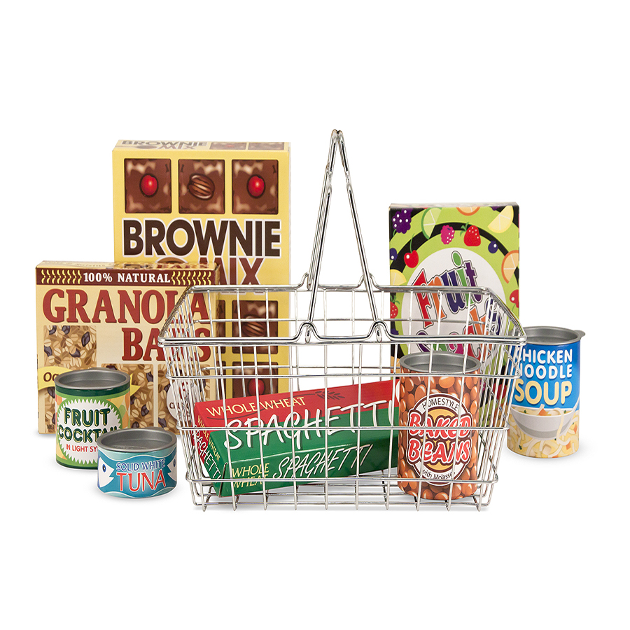 Edad: 3+si hacer crecer la diversión está en tu lista de compras, echa un vistazo a este set "todo en uno" de cocina y juego de comestibles esta canasta de abarrotes es del Tamaño perfecto para un juego imaginativo realista. viene equipada con cajas de comida de juguete y latas de alimentos con tapa pop-off, en total ocho robustos paquetes con coloridas etiquetas, para almacenar, cargue y "cocinar "la cesta está cuidadosamente diseñada para ser cómoda de llevar, fácil de almacenar y maravillosamente duradera. las asas resistentes se pliegan para facilitar el plegado o apilamiento