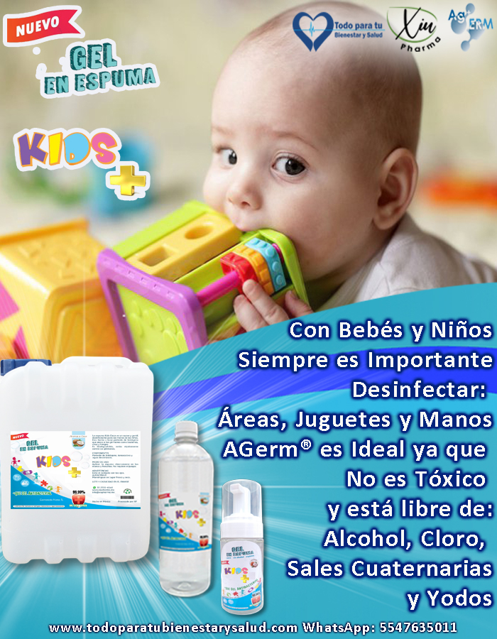 Esta diseñado para la piel de manos y cuerpo, en especial de los niños y juguetes juegos electrónicos y toda superficie donde ellos toquen.