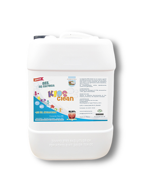 Espuma KIDS CLEAN es un desinfectante de manos y cuerpo que esta realizada a base de peróxido de hidrógeno y un tensoactivo muy gentil o suave para la piel.