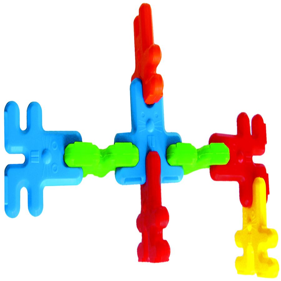 Los ensambles laterales así como la figura en el frente permite al alumno clasificar por color, ensamblar hacia arriba, hacia los lados. Comprensión de los conceptos izquierda-derecha Presentación: charola de plástico con 50 piezas Tamaño Aprox. 8 cm Piezas nivel preescolar y primaria.