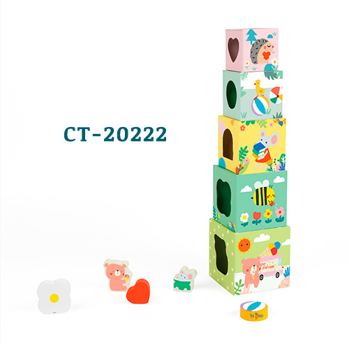 Medida 10.7 x 10.7 x 43.5 cm. Contenido: 10 Piezas (5 cubos de diferentes tamaños y 5 bellas figuras). Se trata de un cubo apilable con tematica forestal, con una variedad de elementos forestales, como plantas, animales e insectos, en diferentes lados. Los niños pueden apilar las cajas para formar una torre alta y tambien pueden jugar un juego de clasificacion de tamaños, o de numeros o bien un match de figuras, nunca se aburriran por la versatilidad de conceptos que se manejan en este juego