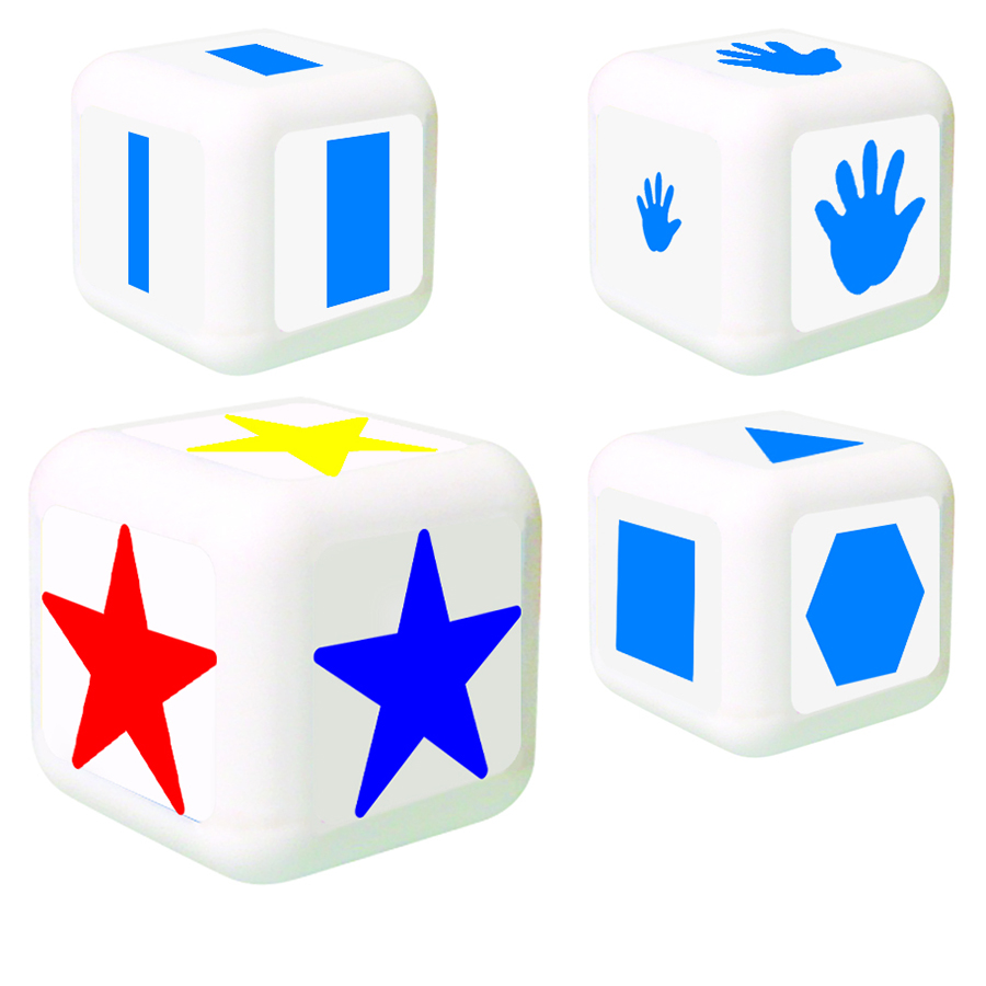 Los dados nos indican si se coloca o retira una pieza de los “Bloques Lógicos” con determinado espesor, Tamaño, color o forma, enriqueciendo de esta manera la dinámica de este material. Presentación: 4 piezas. Tamaño: 3.5 cm por lado.