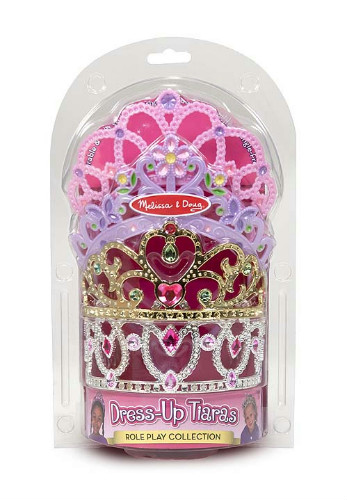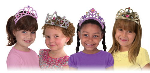 Edad: 3-6 años, este fabuloso conjunto de cuatro coronas y tiaras provee la oportunidad de simular jugar a la realeza! se diseñaron consultando a mamás y a las pequeñas princesas. estas tiaras fueron concienzudamente deseadas para no pellizcar o causar rasguño alguno, y la parte trasera de las coronas no se enredar en el pelo, todas están hechas con los mejores materiales que es pudieron encontrar -- de tal forma que pueden permanecer por años para jugar y aun verse hermosas. estos glamorosos y durables accesorios Incluyen 4 diseños únicos, cada uno con su propio estilo real: dos coronas metálicas (oro y plata) con un brillo biselado y con algunas joyas pintadas; dos tiaras (con flores en color lavanda y joyas en rosa) son lo ideal para una prima ballerina o una hada. todas ellas pueden combinarse con otros vestuarios o disfraces disponibles.