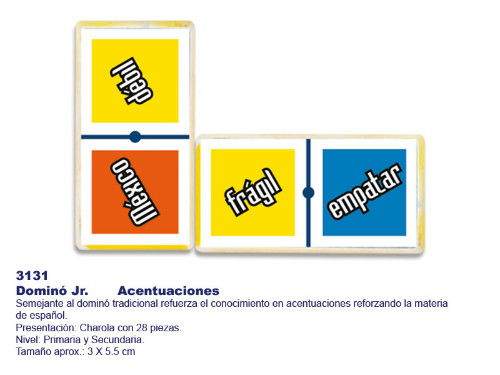 Refuerza el conocimiento en acentuaciones reforzando la materia de español, Presentación: charola con 28 Piezas, Tamaño Aprox. 3 x 5.5 cm nivel primaria.