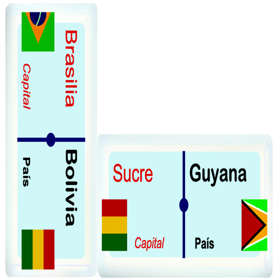 Material didáctico que refuerza el conocimiento en países y capitales de América Presentación: charola con 35 Piezas Tamaño Aprox. 3 x 5.5 cm nivel primaria y secundaria.