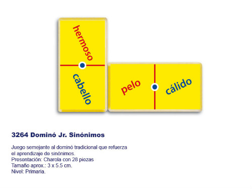 Refuerza el aprendizaje de sinónimos, Presentación: charola con 28 Piezas, Tamaño Aprox. 3 x 5.5 cm nivel primaria.