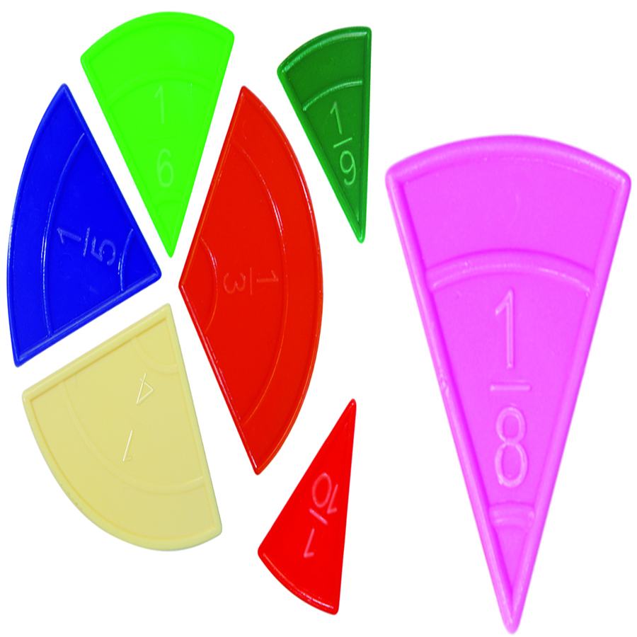 Con este juego el alumno se introduce en la parte fraccional del entorno matemático ya que cuenta con fracciones separadas por color, realizando operaciones de suma, resta, multiplicación y división de fracciones, también desarrolla cálculos de inclinación con la geometría de éstas, auxiliado de un transportador Tamaño Aprox.: 10 cm. 54 Piezas