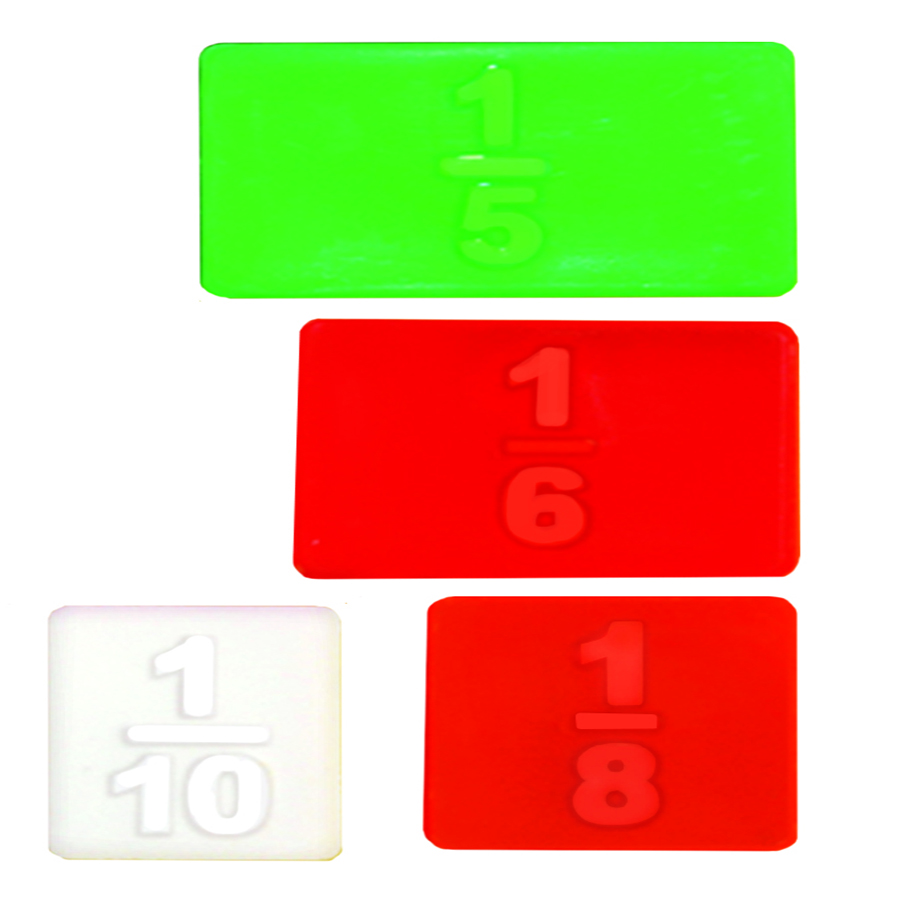 La forma rectangular en la parte fraccional permite al alumno, comparar y realizar ejercicios matemáticos para la solución de razones y proporciones aritméticas Presentación: base con 40 regletas Tamaño: 20 x 20 cm