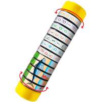 ¿Qué ves en la ilustración? Ahora, gira los anillos y forma la palabra de lo que ves. Medidas 33 x 8 cms