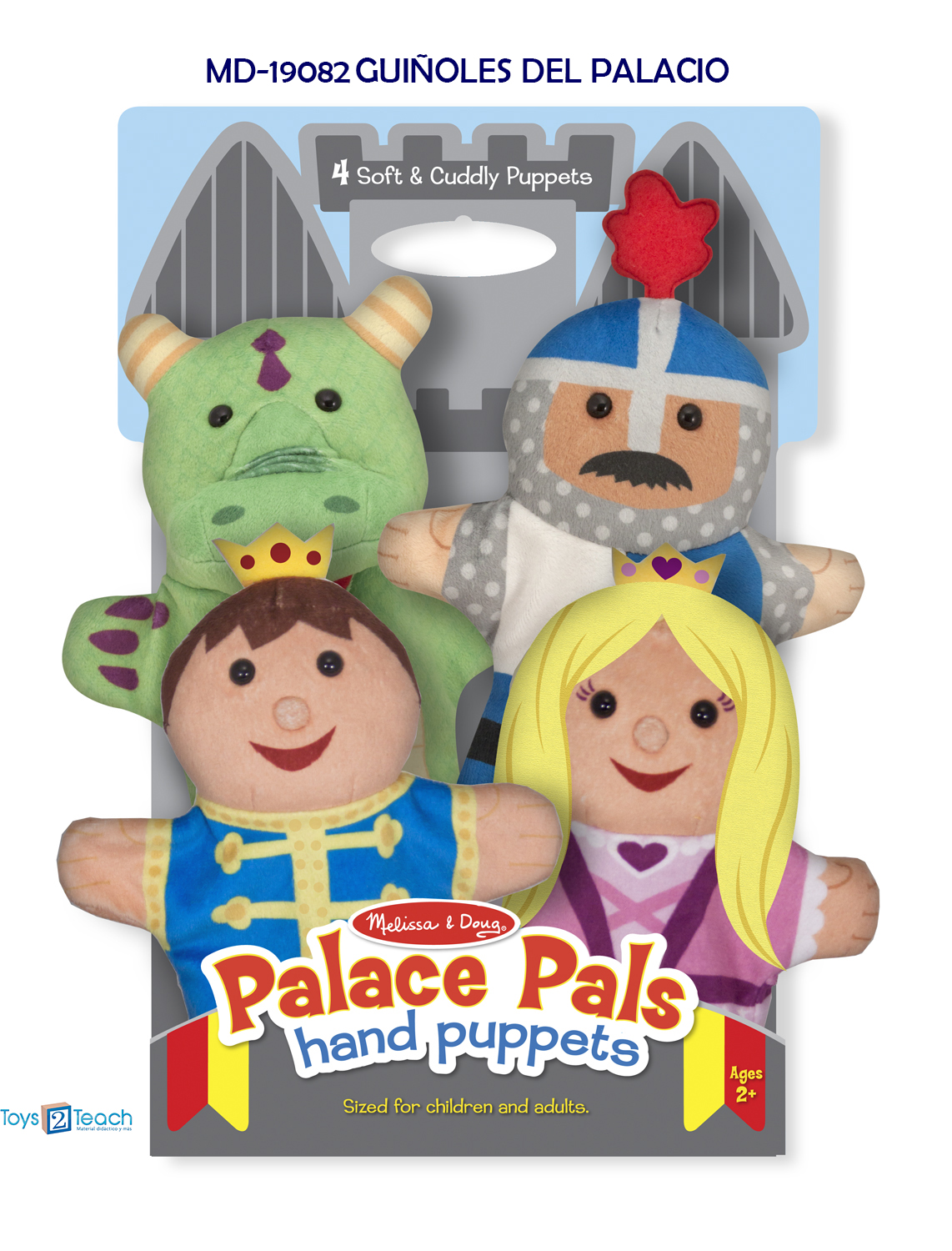 Cuatro títeres suaves de mano con temática de los personajes que habitan un palacio Tamaño único, para adultos y niños. las cabezas suaves, de peluche estimulan a los niños a abrazarlos. telas lavables. ideal para las habilidades motoras, la coordinación mano-ojo, las habilidades de comunicación, la auto-confianza y el vínculo emocional padre-hijo.