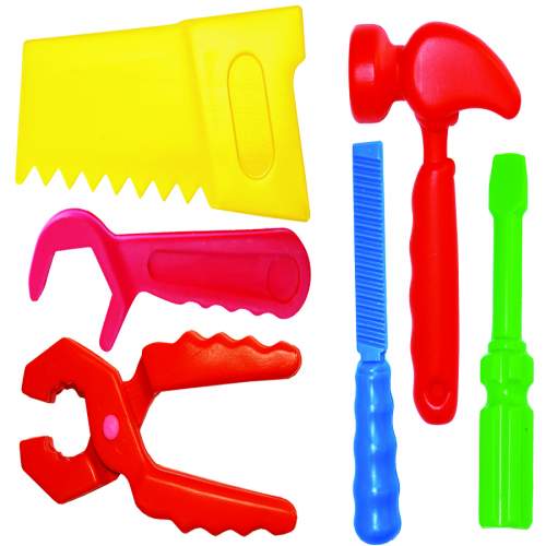 Ahora podrá aprender a usar sin ningún peligro, el martillo, el desarmador, las pinzas, el serrucho, la lima y una llave de tuercas Presentación: charola de plástico con 36 Piezas de diferentes colores Tamaño Aprox. 16 cm piezas nivel preescolar y primaria.