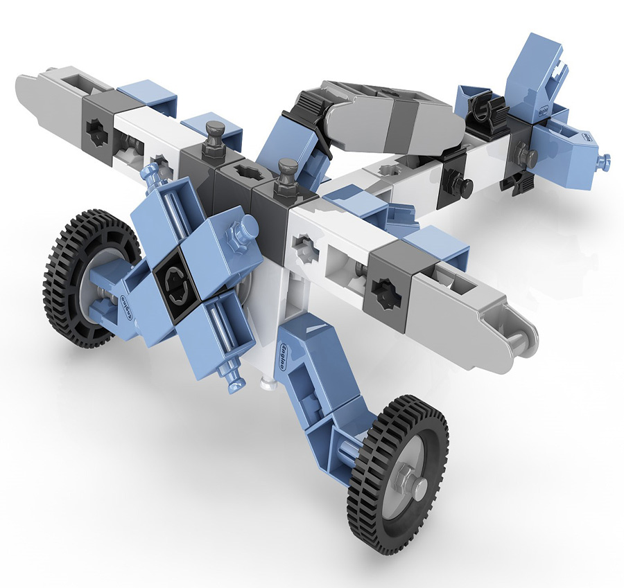 Incluye 55 Piezas de construcción del sistema Engino, AVIONES 4 en 1 -Piezas de color celeste vibrante. Recomendado para edades 6-14 + ¡Inicia una impresionante colección de diferentes tipos de máquinas voladoras con este paquete de Proyectos 4 en 1 AVIÓN! Crea un plano acrobático y sorprende a todos con tus habilidades de vuelo. Ayuda a las personas en peligro rescatando desde áreas remotas con el helicóptero de rescate. ¡Crea un avión Jet y alcanza velocidades máximas! Explora en un hidroavión y muévete entre el aire y el agua. Engino cuenta con el sistema de conectividad a presión en cualquier dirección y ángulo. Herramienta de extracción para fácil desmontaje. Instrucciones interactivas en 3D para descargar en su dispositivo inteligente. Instrucciones de construcción fáciles de seguir. Piezas hechas para durar. No tóxicas.
