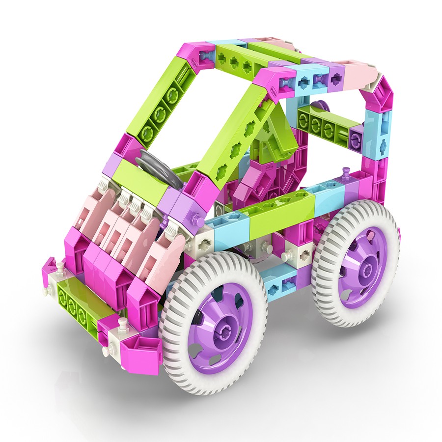 Inspiramos a los arquitect@s e ingenier@s del futuro. tenemos lo último en juguetes de construcción, para diseñar modelos simples o motorizados. Todos nuestros juguetes cuentan con certificación ítem ¡construye 5 modelos diferentes! conseguir que los niños, especialmente las niñas, se interesen en la construcción e ingeniería puede ser una tarea bastante difícil. la nueva serie inventor girl aborda este problema vinculando el juego imaginativo con la creación de modelos tridimensionales estimula a las niñas en edad preescolar a desarrollar sus habilidades cognitivas, sociales y motoras a través de juegos divertidos y creativos el objetivo de proporcionar a las niñas las experiencias, habilidades y conocimientos necesarios para hacer frente a los avances tecnológicos del futuro ¡nuevo diseño patentado! - ¡aumenta la destreza y la percepción del espacio 3d! - ¡construcción tradicional apilando bloques! - ¡creatividad mejorada conectando bloques con barras en cualquier dirección! - todos los proyectos están disponibles con instrucciones interactivas en 3d, ya sea desde un pc o desde Smartphone y tablets a través de la aplicación engina 3d viewer, descargable de forma gratuita en los sistemas operativos Android, Apple (iOS) y Windows Mobile. arma 5 diseños con este modelo