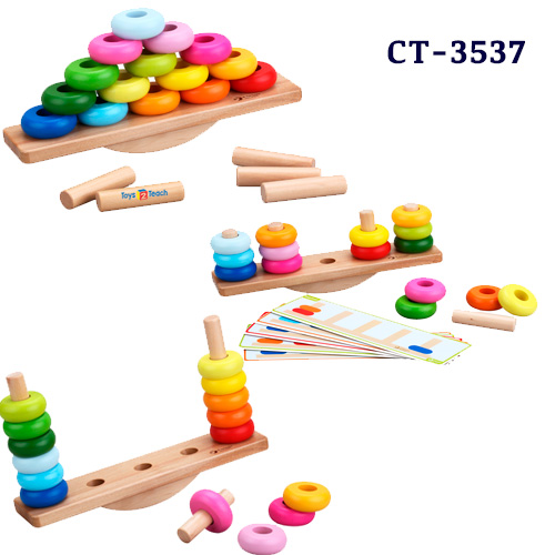 Medida 31.7 x 7.5 x 12 cm. Contenido: 21 piezas. Este exclusivo balancin de equilibrio es especial para "apilar y clasificar" es muy divertido y desafiante. Contiene tarjetas con retos para que el pequeño desarrolle habilidades logicas y de resolucion de problemas mientras sigue los patrones de las mismas y coloca los discos de colores en el orden que indica cada tarjeta, hay que ser cuidadosos para mantener el balance