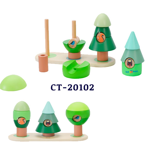 Medida 23 x 8 x 2.4 cm Contenido: 12 piezas. ¡Mira estos tres adorables arboles! Hay tres animales: el buho, el pajaro carpintero y la ardilla que viven alli. Los niños pueden crear diferentes formas con su imaginacion. Mediante el proceso de apilamiento, tambien pueden desarrollar la coordinacion ojo-mano.