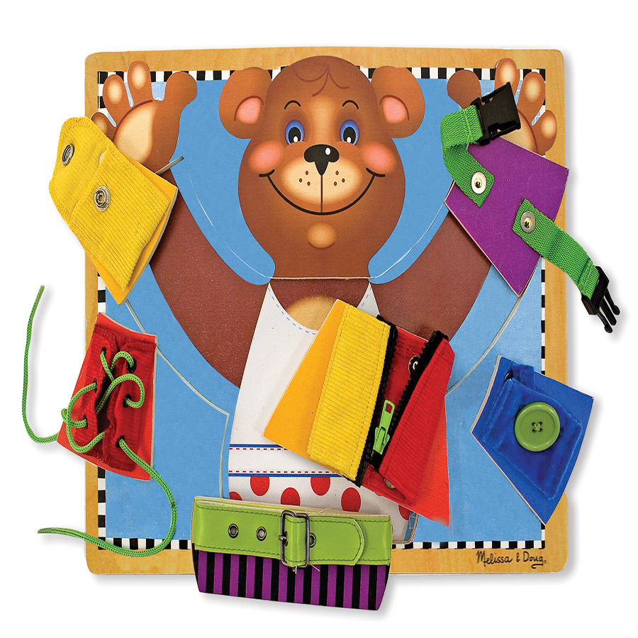 Edad: 3+este oso de madera siempre está sonriendo, pero él estará más feliz cuando esté completamente vestido! El reto es aplicar todas tus habilidades para vestir de la mejor manera a tu osos, debes logar la forma adecuada, coser la rotura, atar los cordones y más para vestirlo adecuadamente desarrolla las habilidades motoras finas y las habilidades practicas de la vida con este gran actividad