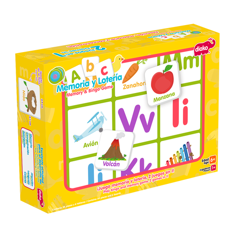 2 Juegos en 1, es el complemento ideal para aprender letras y palabras fácilmente. Se puede jugar individual o en grupo. Desarrolla habilidades como: la memoria, la concentración, la asociación, la atención, el lenguaje y el aprendizaje de los colores y las letras.Contenido: 54 Piezas y 6 TablerosMedida Caja: 21 x 16 x 6 cmMedida Pieza: 3.7 x 3.7 cmEdad: 6+