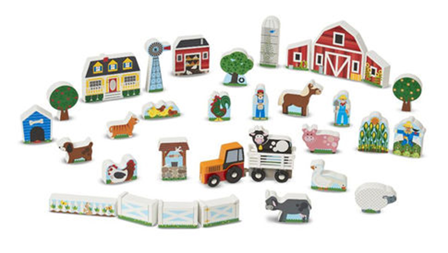Construye y cultiva un mundo lleno de imaginación - bloque por bloque El set de 33 piezas de animales temáticos de la granja, edificios y piezas de juguete incluye un tractor de ruedas que tira de un remolque de plataforma, de tamaño ideal para transportar los animales alrededor de la granja. Los bloques de madera están bellamente decorados por un lado y son ideales para apilar, clasificar, contar y construir y están diseñados para coordinar perfectamente con las alfombras de actividades de Melissa & Doug. Este set es perfecto para que los niños de 3 años en adelante desarrollen habilidades motoras finas y estimula la capacidad narrativa y el juego imaginativo. Set de bloques de madera con tema de la granja de 33 piezas Incluye tractor y remolque de plataforma con ruedas Las piezas están decoradas por un lado; coordina perfectamente con las alfombras de actividades de Melissa & Doug Promueve el desarrollo de las habilidades motoras finas, estimula la capacidad narrativa y el juego imaginativo