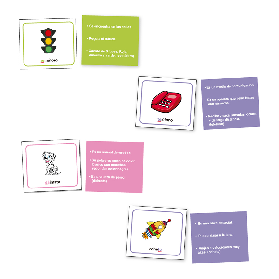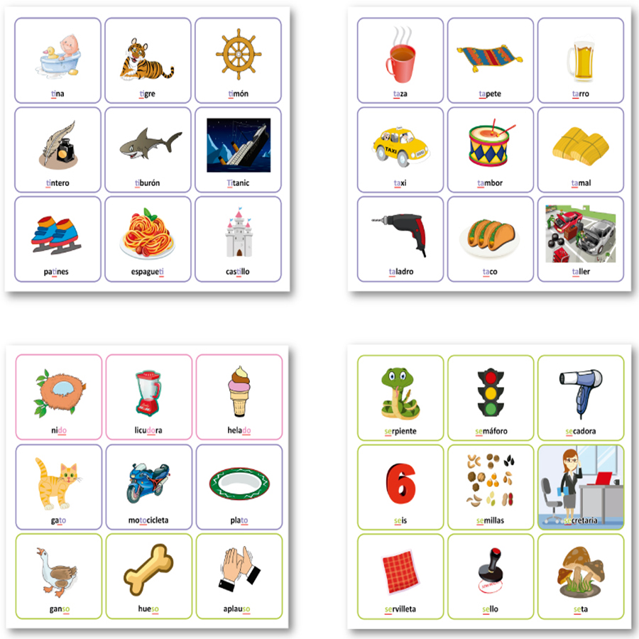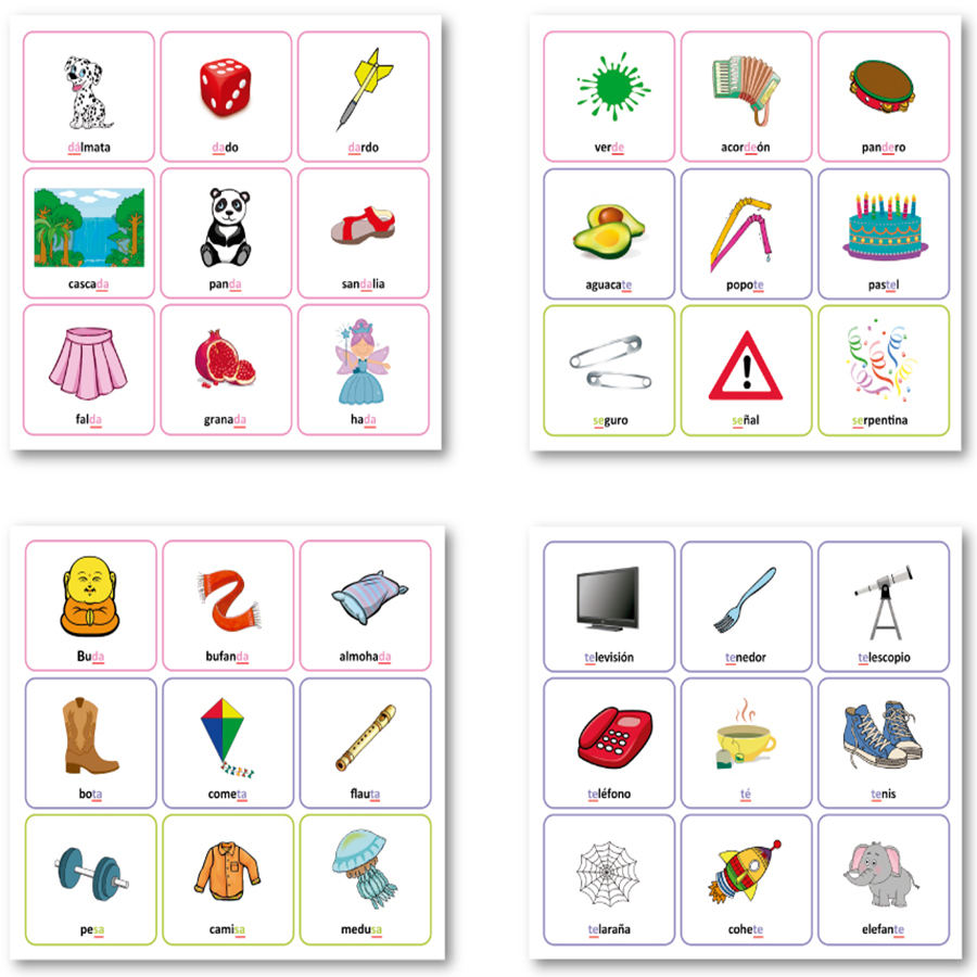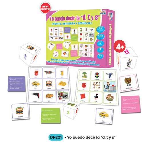 Con esta divertida lotería el niño aprenderá a tener conciencia de su pronunciación y logrará corregir la articulación de los fonemas “d, t y s” será capaz de unir correctamente las sílabas para emplearlas de manera correcta al momento de comunicarse. Incrementará su vocabulario con los fonemas “d, t y s” logrando a su vez la identificación, discriminación y pronunciación de las palabras. Permitirá de una manera entretenida, buscar la corrección y expresión adecuada del niño. Incluye: 10 tableros de dos vistas (total 20) 180 tarjetas ilustradas con diferentes palabras. 3 dados para armar. Instructivo con diferentes formas de utilizar el material.