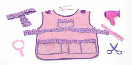 Edad: 3 a 6 años, haga una cita con la diversión con este juego de estilista . su joven peluquero se puede poner la bata-lavable a máquina y la tarjeta de identificación personalizable, y luego utilizar el peine y el cepillo para lograr un nuevo estilo todos los días. el secador de pelo a batería suena como real! Incluye tijeras sin filo y una diadema como accesorio. clientes satisfechos pueden checarse a s¡ mismos en el espejo de mano de plástico!