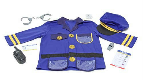 Edad: 3 a 6 años, es fácil hacer cumplir la ley de la tierra cuando se tiene el equipo adecuado! a tu pequeño agente de policía le encantar este traje de oficial, lavable a máquina. Incluye la chaqueta y la gorra, una brillante placa de policía, el silbato, walkie-talkie con efectos de sonido, esposas, block de multas y una etiqueta para el nombre y personalizar el traje y así nadie se atrever a caminar fuera de la ley en su vecindario