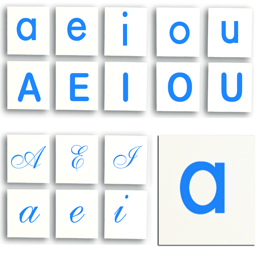 Impresas sobre estireno con diferentes estilos, facilita el aprendizaje de las vocales en diferentes tipos de escrituras Presentación: letras en charola con 200 piezas Tamaño Aprox. 3 x 3 cm nivel preescolar y primaria.