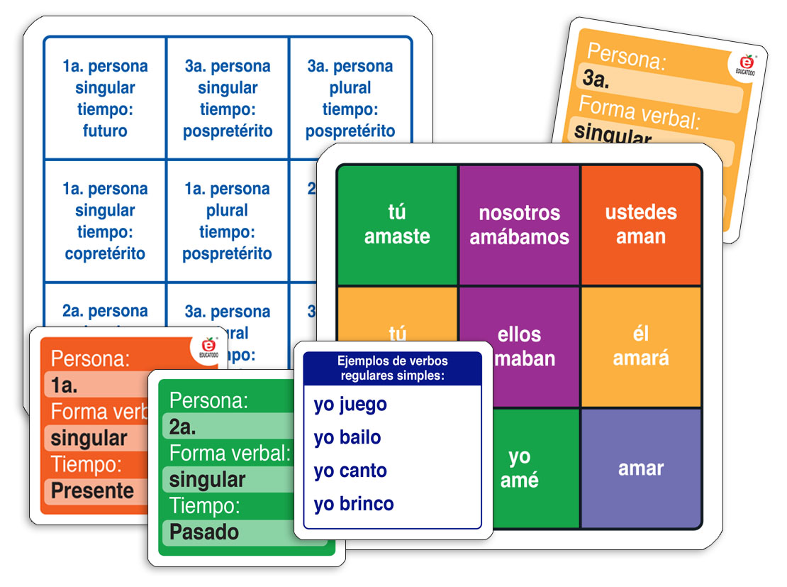 24 tableros de 20 x 20 cm, 40 tarjetas de 10 x 10 cms. 216 fichas