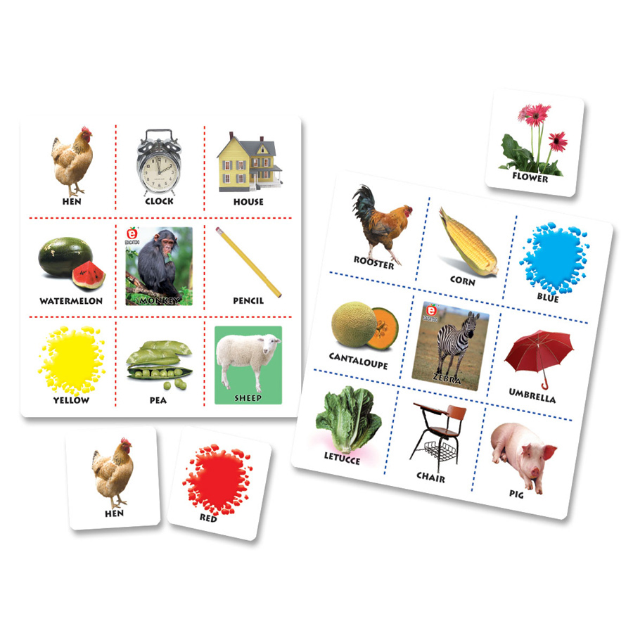 Cartulina plastificada 6 tableros de 15 x 14.5 cm 54 tarjetas 4.8 x 4.9 cm 54 Fichas