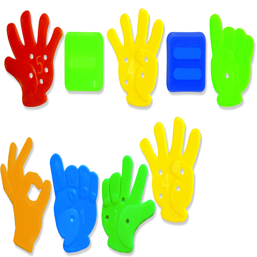 Material en forma de manitas que cuentan con los dedos permite al niño el aprendizaje en los números como el concepto de las decenas, centenas y unidades, Presentación: charola con 80 Piezas Tamaño Aprox. 6 cm por pieza, nivel preescolar y primaria.