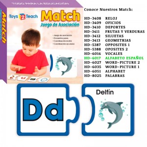El niño de aprende vocabulario de una manera muy divertida, también se inicia en la lectoescritura en español de manera muy natural al ir correlacionando la imagen con el texto. Presentación: 58 piezas Tamaño aproximado: 8.5 x 7 cm