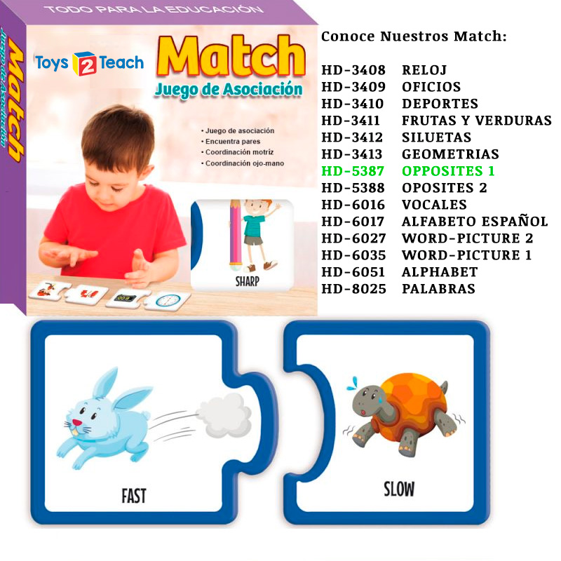 El niño de una manera lúdica aprende vocabulario al mismo tiempo de iniciarse en la lectoescritura en inglés de manera natural al ir correlacionando la imagen con el texto. Presentación: 24 piezas de 8.5 x 7 cm