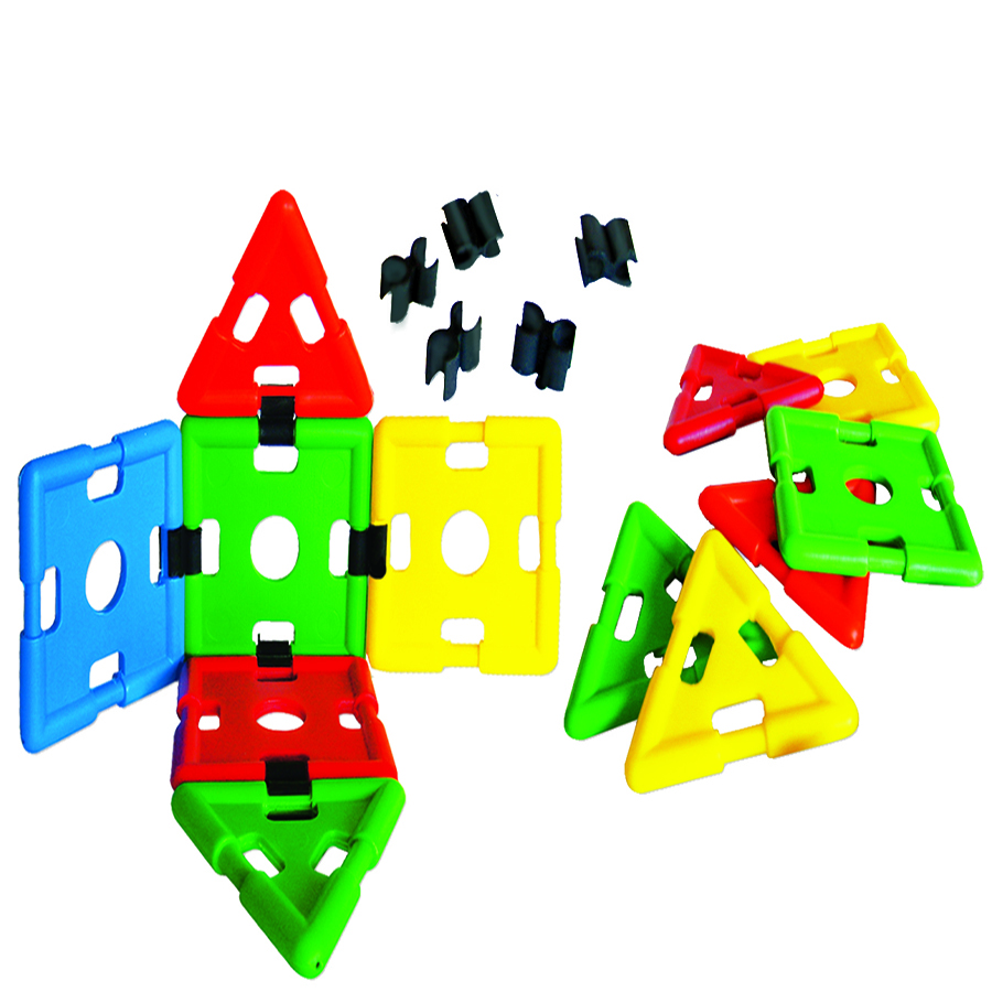Sus diferentes geometrías planas permiten al alumno generar figuras geométricas en 3 dimensiones, ejercitar seriación, forma y Tamaño construcción libre que con sus 3 geometrías de unión permite desarrollar la ubicación espacial Presentación: charola de plástico con 40 piezas Tamaño Aprox. 7 x 7 cm piezas nivel preescolar y primaria