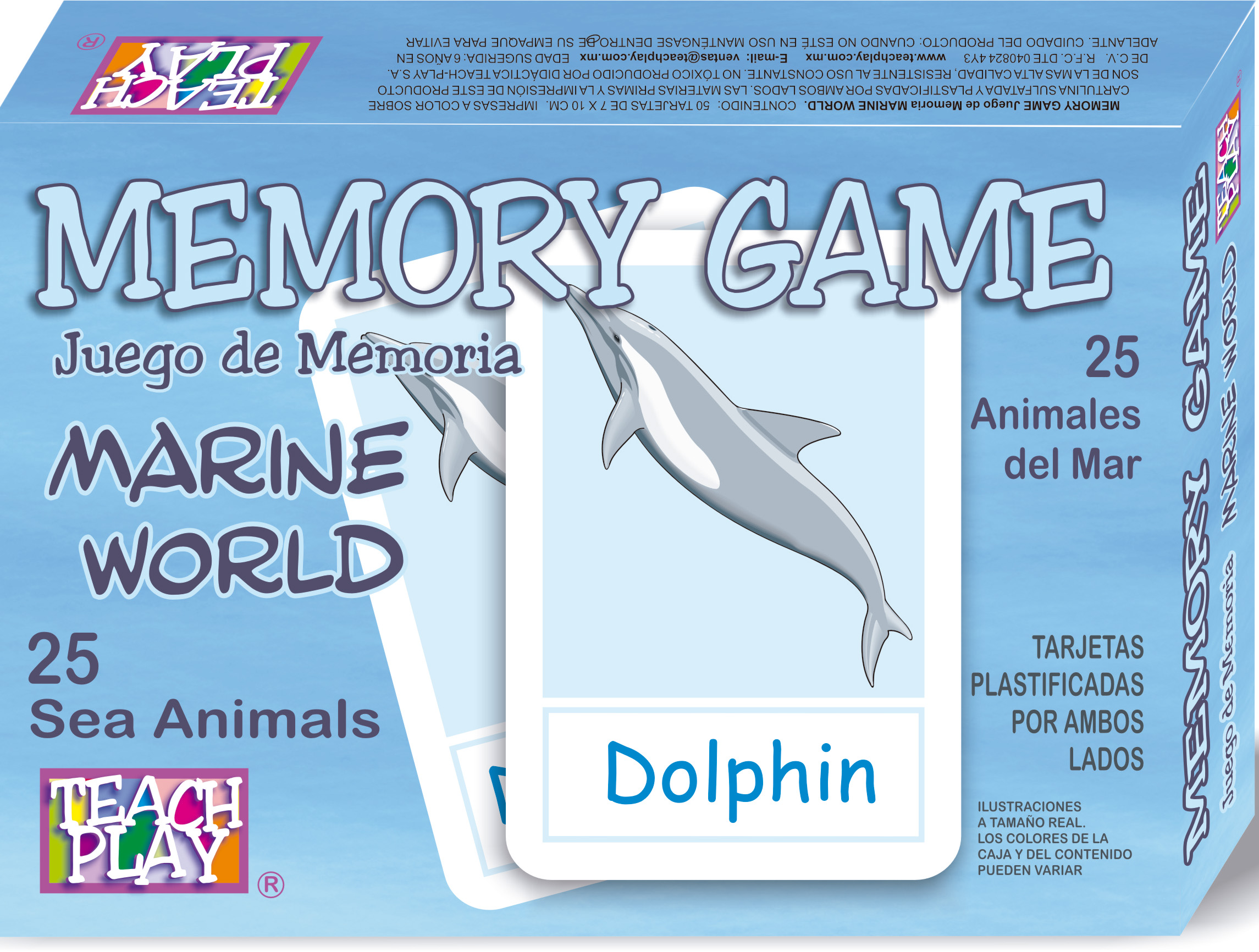 Juego de memoria de 25 diferentes animales del mar en ingles. excelente material didáctico para que los niños aprendan ingles jugando. tarjetas impresas a color y plastificadas por ambos lados. Contenido: 50 tarjetas. Tamaño Aproximado: tarjeta 7x10 cm.
