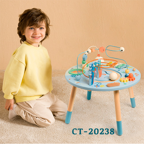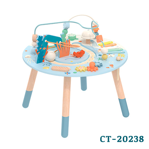 Medida: 45 x 45 x 44.5 cm. Contenido: 6 Piezas. Comienza tu viaje musical. Esta mesa de actividades musicales multifuncional con tematica oceanica y una variedad de elementos oceanicos e instrumentos musicales para tocar. Las caracteristicas incluyen engranajes para girar, cuentas para deslizar, un xilofono para comenzar tu viaje musical, un boton de tortuga para girar, una bola para deslizar y luego tocar la campana, ¡y un tambor para tocar! Los niños disfrutaran de mucha diversion mientras juegan con el.