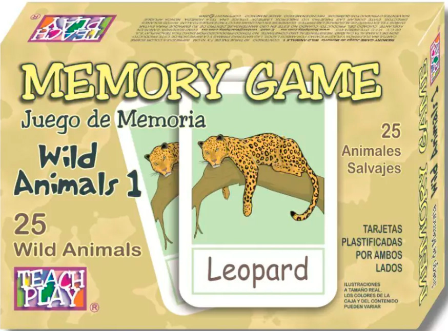 Juego de memoria de animales salvajes en ingles. excelente material didáctico para que los niños aprendan ingles jugando. tarjetas impresas a color y plastificadas por ambos lados. Contenido: 50 tarjetas. Tamaño Aproximado: tarjeta 7x10 cm.