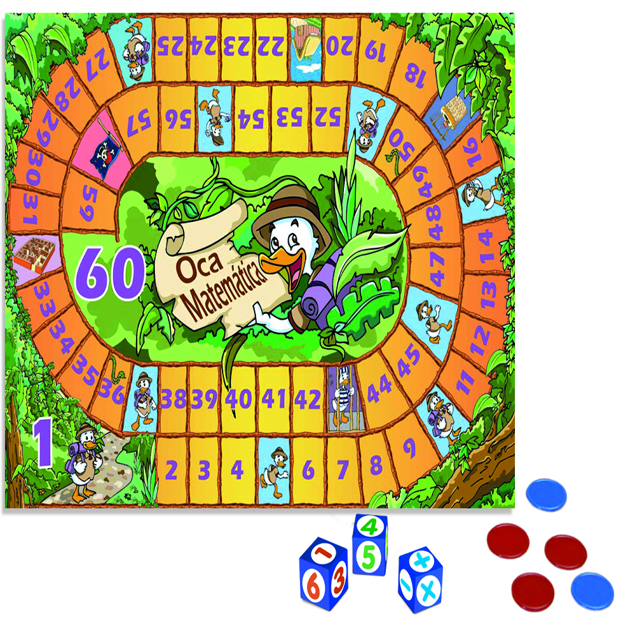 Tablero de la oca tradicional permite al niño a practicar las operaciones básicas, Presentación: estuche tubular plástico Incluye 1 tablero, 3 dados y 10 fichas, Tamaño de 43 x 60 cms nivel preescolar y primaria.