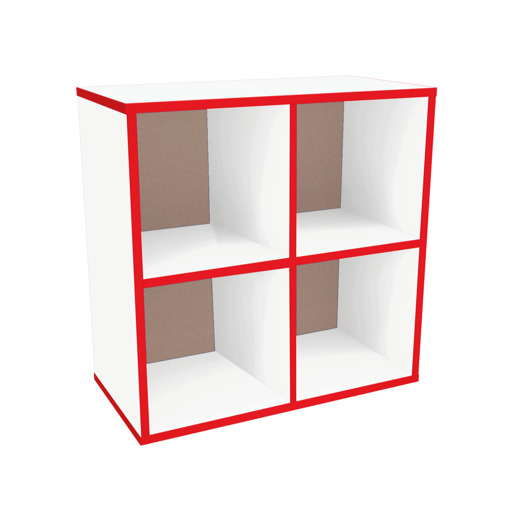 Organizador con cubierta de melamina con 4 espacios para almacenar. Tiene el tamaño perfecto para áreas de juegos, escolares y el hogar. Medidas: 62 x 62 x 32 cm