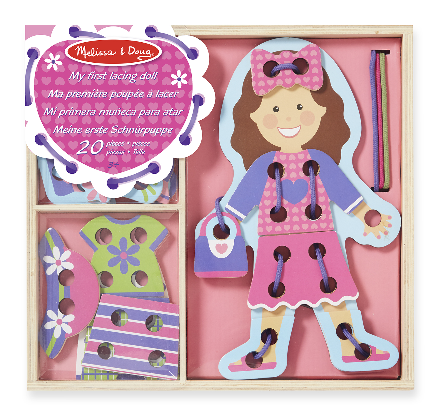Una mu¤eca fabulosa de madera que tiene cordones. Fomenta el desarrollo motor y el desarrollo creativo adem s de ser muy divertido. Incluye 16 piezas de ropa, adem s de tres cordones largos para "atar"